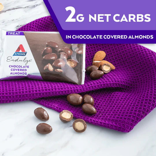 Real roasted almonds dipped in a rich chocolaty coating. This decadent treat with 1g of sugar will satisfy your sweet tooth while keeping you on track.