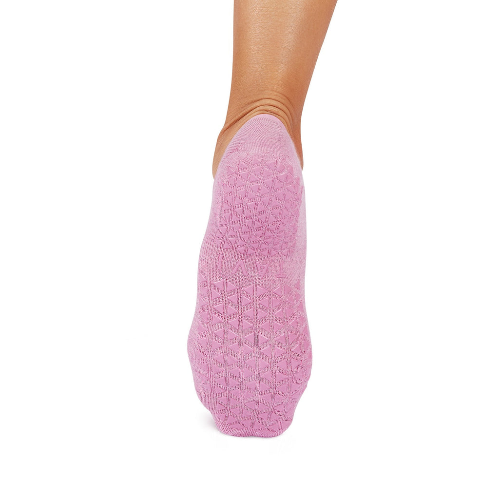 Double up on stability with innovative design. The Luanna Grip Sock features dual elastic straps and targeted arch compression, while TAVI's signature grip technology ensures secure footing for dynamic studio movement.