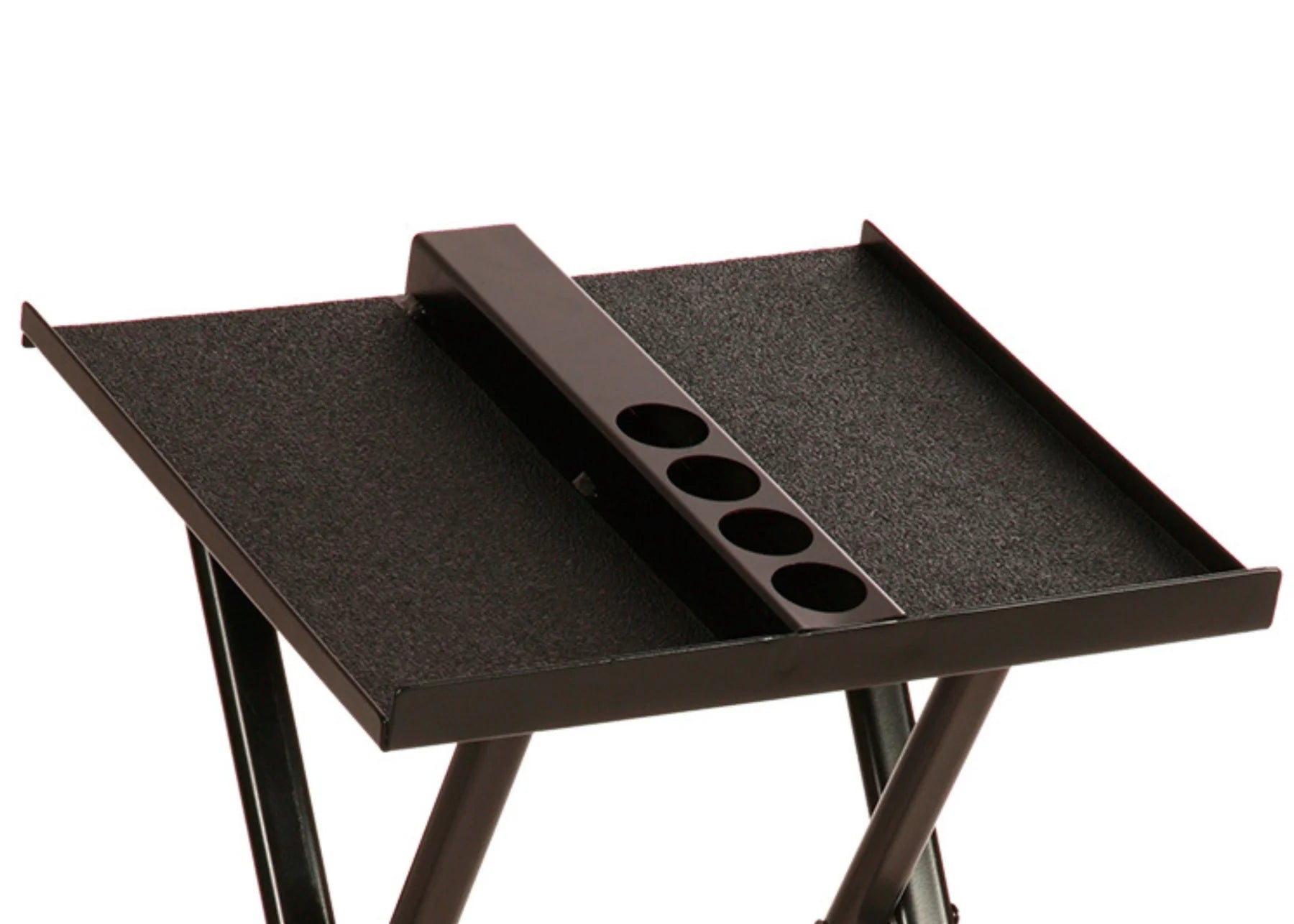 - Strong & Stable: Built with rugged, lightweight metal construction and fold-out legs with rubber feet for added stability, ensuring the stand remains stable on flat surfaces during use.