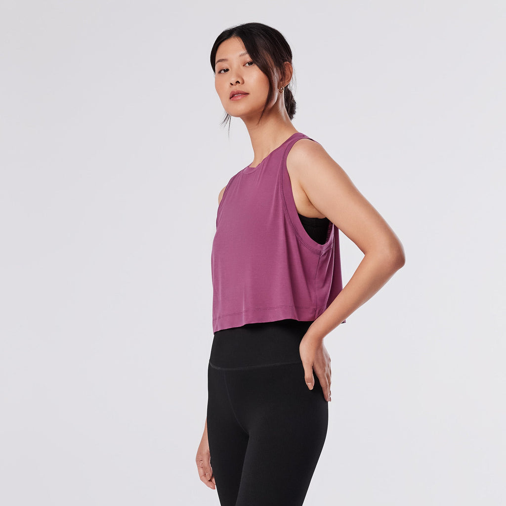 The Sporty Tank delivers cloud-like comfort in our signature TaviLuxeâ„¢ fabric. Featuring a relaxed athletic fit, crew neck with contrast binding, and dropped armholes, this versatile piece combines buttery-soft feel with natural moisture-wicking performance.