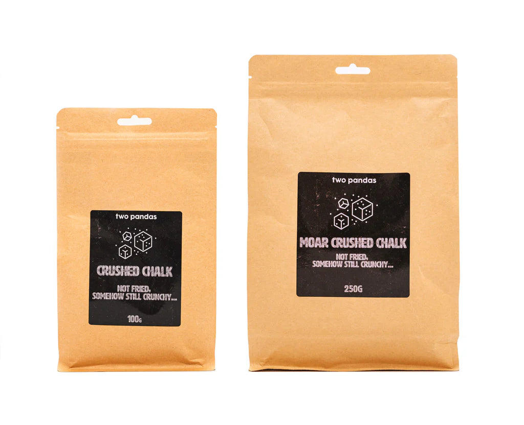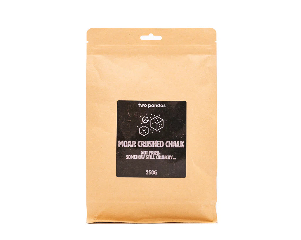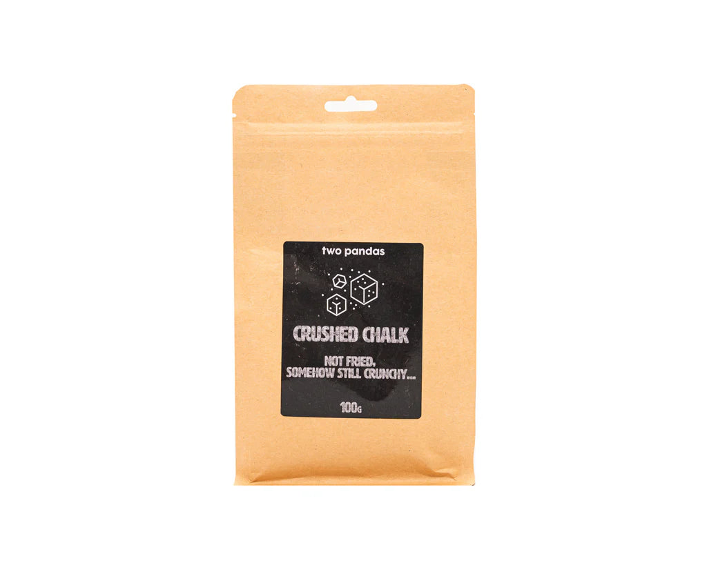 Experience the satisfying feel and superior grip of Two Pandas Crushed Chalk, available in 100g and 250g packs. Made from pure magnesium carbonate, this chalk comes in chunk form—perfect for athletes who love the tactile experience of crushing it by hand before a big lift or climb.